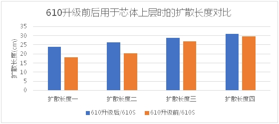 610ÔÚÆäËûÖ¸±ê¼á³ÖÎȹ̵ÄÌõ¼þÏ£¬Í¨ÒºËÙÂÊ´Ó18mL/min´ó·ùÌáÉýÖÁ30mL/min¡£ ½ÓÄÉÉý¼¶ºó610µÄоÌåÖ½Äò¿ãÐÔÄܱ仯